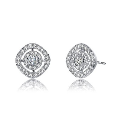 Rhodium-Plated Square Stud Earrings with Sparkling Cubic Zirconia for a Sleek and Elegant Look