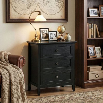 GDFStudio Mariel Vintage Nightstand with 3 Drawers and Floral Knobs