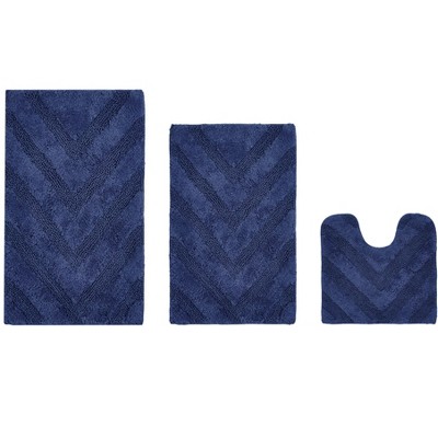 Hugo 3-Piece Bath Rug Set 100% Premium Cotton Tufted Chevron Pattern Bathmats for Bathroom, Super Soft Absorbent Machine Washable Floor Bathmat