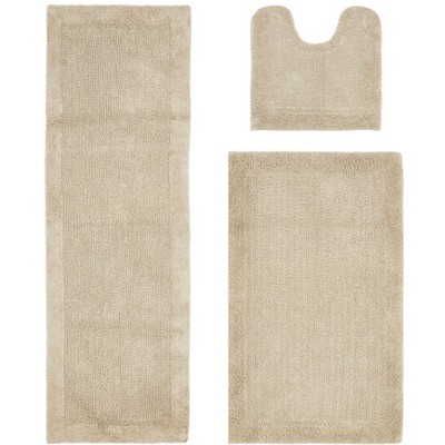 Edge Bath Rug 100% Premium Cotton Ultra-Soft Water Absorbent Tufted Solid Reversible 3 Piece Bathroom Rug Set for Machine Washable Bathmat