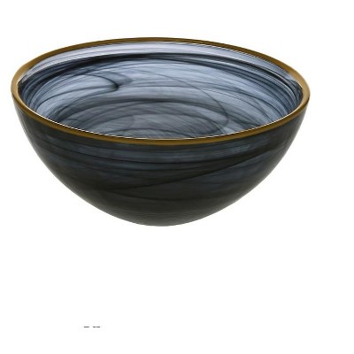 Classic Touch Black Alabaster Bowl with Gold Rim - 6.25"D