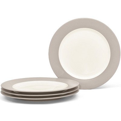 Portmeirion Potter's Brushstroke 10.5" Dinner Plate (Set of 4) - Handcrafted Earthenware Plates with Accent Rim, Microwave & Dishwasher Safe - (Grey)