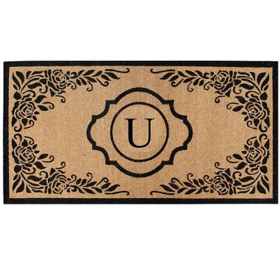 A1HC Natural Rubber & Coir 18x30, Monogrammed Doormat For Outdoor Entrance, Anti-Shed Treated Mat
