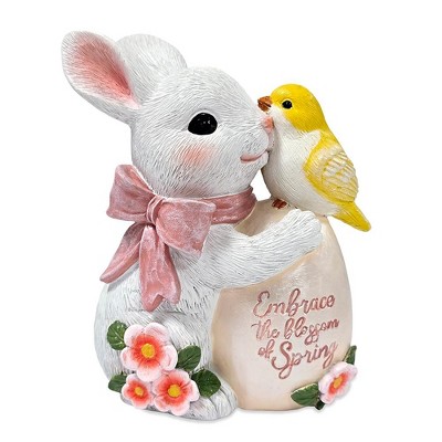 Transpac Resin Sitting Mint Julep Bunny with Bow White and Blue for Easter Home Decor