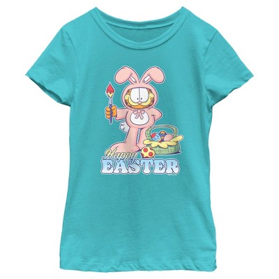 Girl's Garfield Happy Easter Bunny Ears Cat T-Shirt