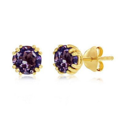 Simona Sterling Silver 'October Birthstone' 6mm Round Gem, Gold Plated Stud Earrings- Pink Amethyst (2cttw) - Pink