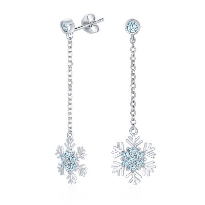 Bling Jewelry Ice Blue Clear Cubic Zirconia Frozen Winter Holiday Party CZ Linear Chain Drop Christmas Snowflake Dangle Earrings Sterling Silver Color