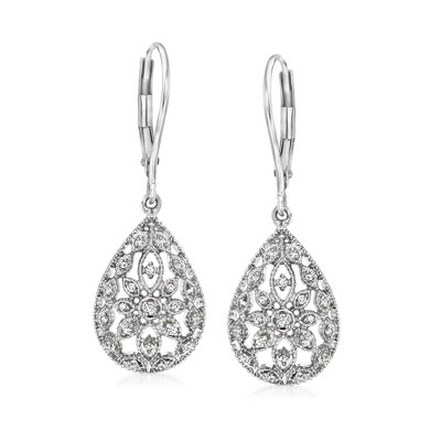 Ross-Simons 0.10 ct. t.w. Diamond Openwork Teardrop Earrings in Sterling Silver