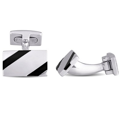 EVERLY JEWELRY |Sterling Silver Onyx and White and Square Crystal Cufflinks
