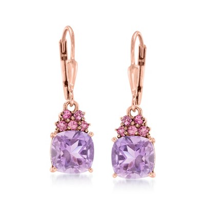 Ross-Simons 3.60 ct. t.w. Amethyst and .40 ct. t.w. Rhodolite Garnet Drop Earrings in 18kt Rose Gold Over Sterling