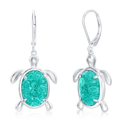 Caribbean Treasures Sterling Silver Larimar Lady Bug Earrings - Blue