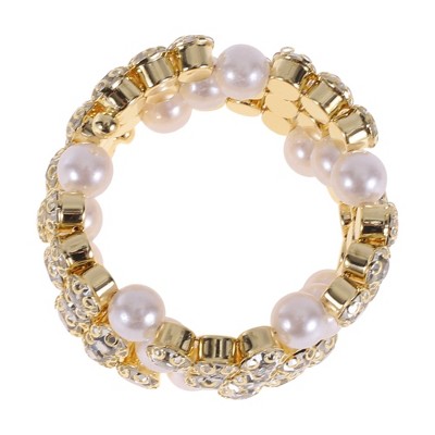 Unique Bargains Napkin Rings Faux Pearl & Rhinestone Metal Rhinestone Gold Tone 1 Pc