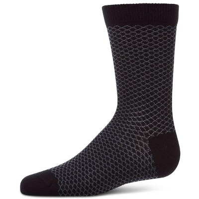 Memoi Boys "Geo" Cotton-Rich Geometric Diamond-Pattern Everyday Crew Sock Black 6-7