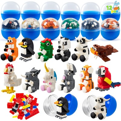 Joyfy 12 Packs Prefilled Easter Eggs with Animal Building Blocks Toys for Kids Easter Egg Hunt, Basket Stuffers/Fillers, Party Favors, Classroom Gifts