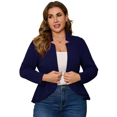 Womens Long Sleeve Velvet Blazer Jacket Suit Open Front Ruffle Work Office Cardigan Coat