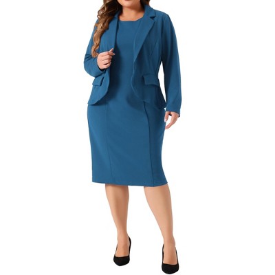 Women's Plus Size 2 Piece Back Split Dress Single Button Blazers with Pocket Business Suit Sets - Agnes Orinda