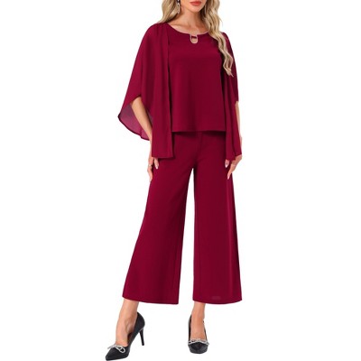 INSPIRE CHIC Women's Chiffon Sleeve Top Wide Legs Pants 2 Pieces Sets