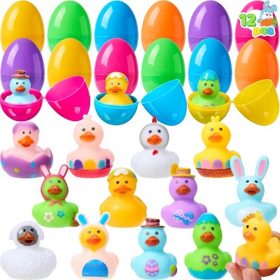 Joyfy 12 Packs Prefilled Easter Eggs with Rubber Ducks Bathtub Toys Party Favors, Kids Classroom Exchange Gifts Easter Eggs Hunt
