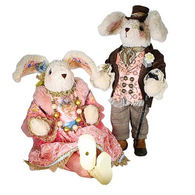 Karen Didion 22.0 Inch Fred And Ginger Bunny S/2 Easter Figurine Set , Bling Spring Decor Easter Handmade (2PC)