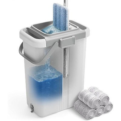 Spin Mop and Bucket Set w/Self Separation Dirty and Clean Water System, Self Wringing 360¡ã Rotating Square Mop Head (1.0 Mop and Bucket Set (2 Pads))
