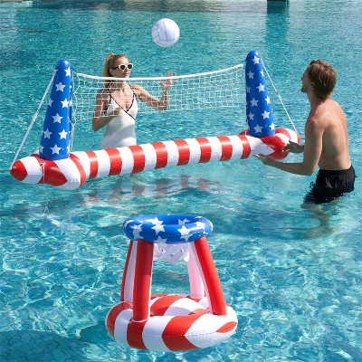 Joyfy Inflatable Volleyball Net & Basketball Hoop Pool Float Set with Balls - Perfect Summer Pool Games for Kids & Adults Beach Parties & Backyard Fun