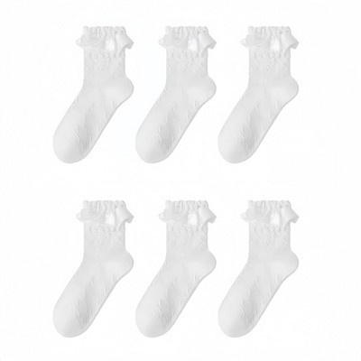 Anna-Kaci Women's 6-Piece Ruffle Trim Ankle Socks with Soft Stretch Fabric Breathable Lightweight Textured Knit