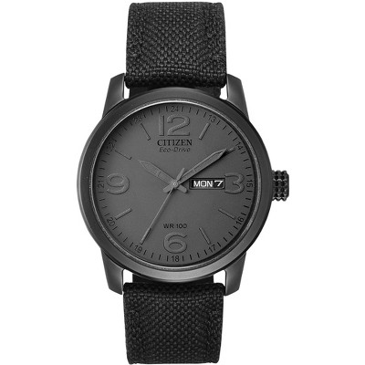 Citizen Men's Eco-Drive Sport Casual Garrison Watch, Black Nylon Strap, Black Dial , 3 Hand, Day / Date