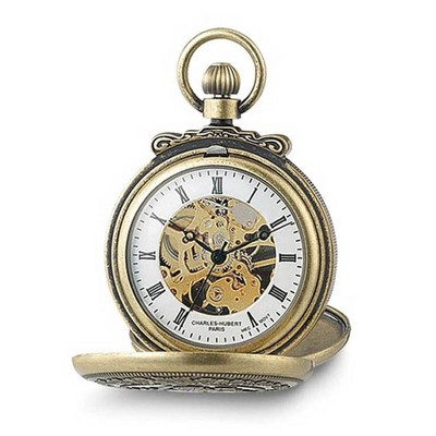 Black Bow Jewelry Charles Hubert Stainless Steel Skeleton Dial 54mm Pocket Watch