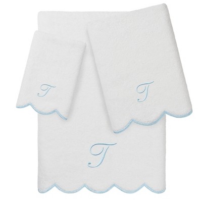 Linum Home Textiles 100% Turkish Cotton ADORNIA Scallop Personalized Towel Collection - Blue