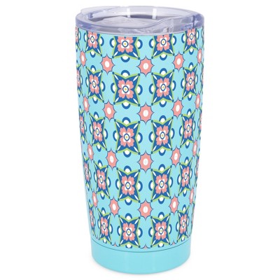 Elanze Designs Blue & Pink Moroccan Tile Motif Wrap-Around Design 20 Ounce Stainless Steel On-The-Go Coffee Mug, Thermal Travel Tumbler with Leak
