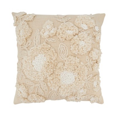Saro Lifestyle Delicate Embroidered Floral Down Filled Pillow, 20"x20", Beige