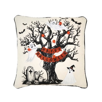 Saro Lifestyle Happy Halloween Tree Poly Filled Throw Pillow, 18", Natural