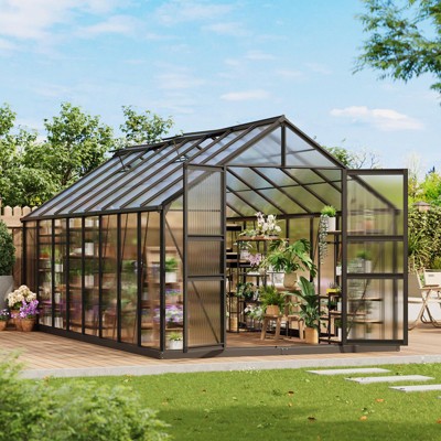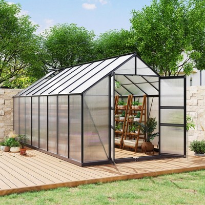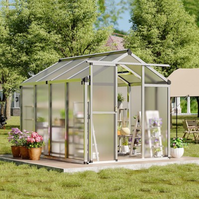Greenhouse – Outdoor Polycarbonate Walk-In Greenhouse with Aluminum Frame, Lockable Door & Adjustable Roof Vent – All-Season Backyard Garden Patio