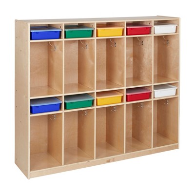 ECR4Kids 10-Section Storage Locker and Letter Size Trays with Lids, Natural