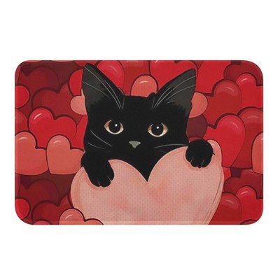 Valentine's Day Three Watercolor Hearts & Black Love Script Doormat & Bath Mat - Crystal Velvet, Non-Slip Absorbent 15.7x23.6in