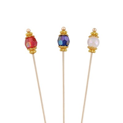 Alilang Vintage 3Pcs Long Stick Hat Pins Crystal Flower Butterfly and Pearl Details for Classic Hat Lapel and Scarf Accessorizing - 3pcs Bead