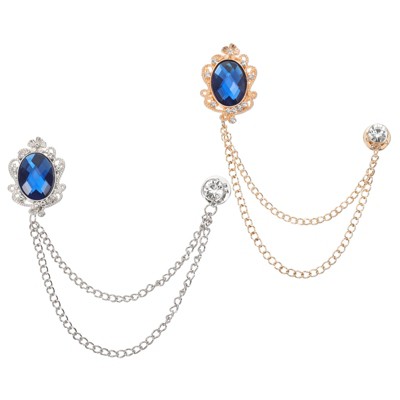 Unique Bargains Gem Hanging Chain Rhinestone Gem Brooch Pins 2 Pcs