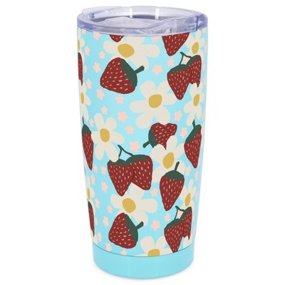 Elanze Designs 20 oz Stainless Steel On the Go Insulated Travel Tumbler With Push Top Lid, Vibrant Blue Monarch Butterfly Pattern Blue