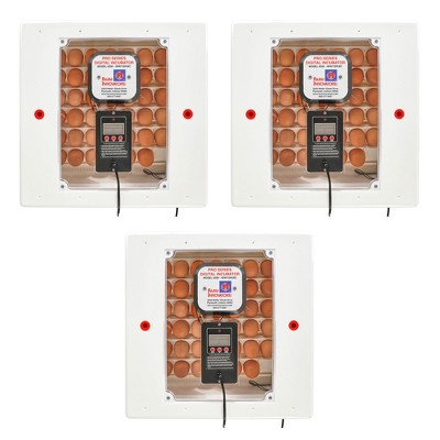 Farm Innovators Egg Incubator with Automatic Egg Turning & Humidity Control, Egg Candler w/Digital LCD Display for Improved Hatching, 3 Pack, White