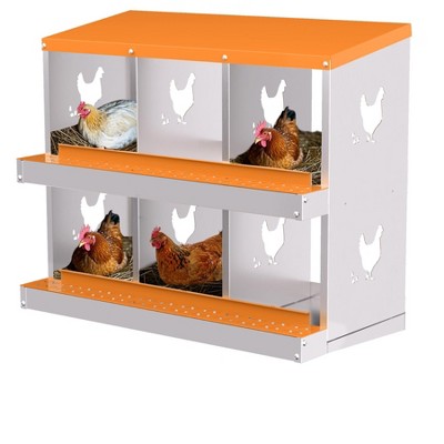GOCAPTAIN 6-Hole Metal Chicken Nesting Box, Lid Cover for Easy Egg Collection, Outdoor Use for Poultry Coop, Farm & Yard, with Bracket Legs