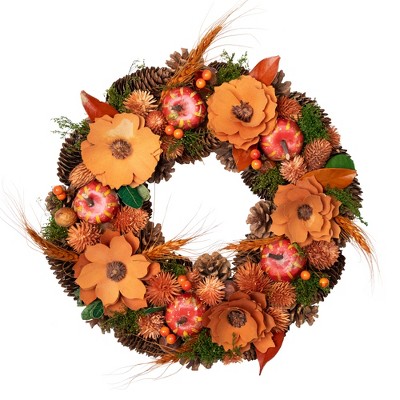 Northlight Yellow and Orange Berry and Leaves Fall Harvest Artificial Wreath - 24-Inch, Unlit