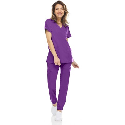 MediChic Womens 8-Pocket Scrubs Set- Mock Neck with 4-Pocket Jogger Scrub Pants