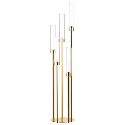 42.5In 5 Arm Gold Floor Candelabra, Tall Metal Candle Centerpieces for Tables