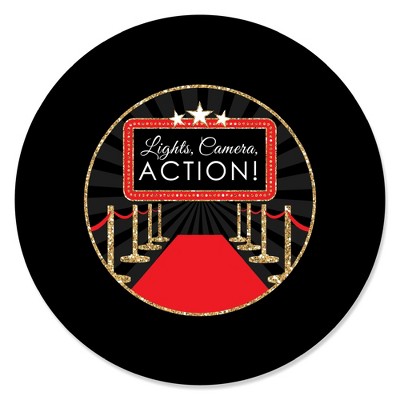 Big Dot of Happiness Red Carpet - Movie Night Party Circle Sticker Labels - 24 Count