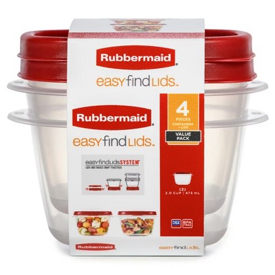 Rubbermaid Clear Food Storage and Organization Container Set w/ Lid, 2 Pack, Red