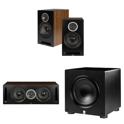 Elac Debut 3.0 Walnut 6.5 Inch Towers With 6.5 Inch Center And Elac Varro 10 Inch Subwoofer