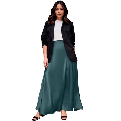 LEVEN SIXTEEN Women's Satin Midi Skirt - High Waist Slit Design with Comfortable Elastic Waistband Blue