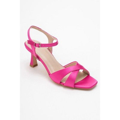 Melin - Fuchsia Satin Cross Strap Stiletto Sandal (Women) | Prologue Shoes