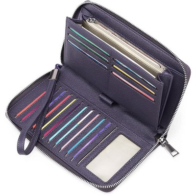 BABYYER Womens Wallet RFID Blocking Leather Zip Around Wallet with ID Windows Large Capacity Long Purse Credit Card Clutch Wristlet