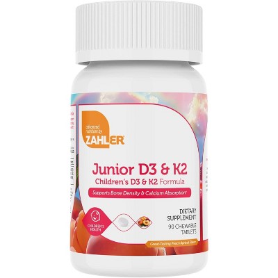 Zahler Junior D3 K2, Chewable Vitamin D with K2 for Kids, Vitamin D3 2000 IU and K2 for Children, Certified Kosher - 90 Chewable Tablets